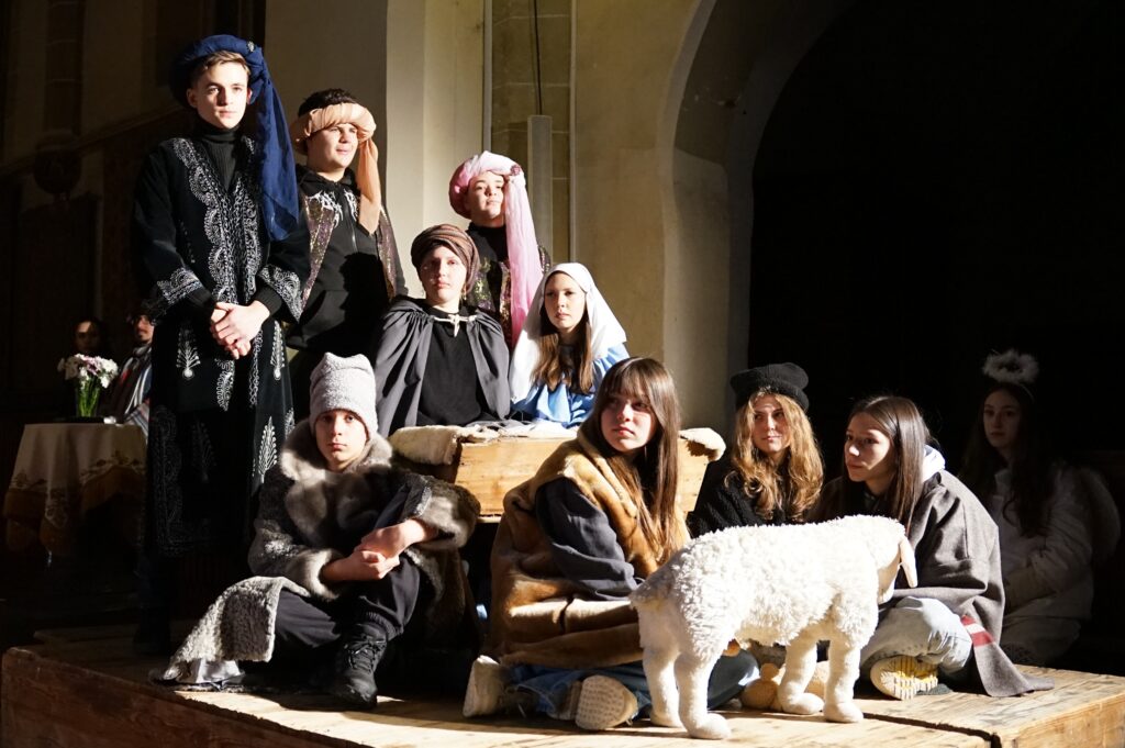 Am Dienstag, den 23. Dezember, fand in der Margarethenkirche bei Mediasch ein stimmungsvoller Krippenspiel-Gottesdienst statt. Unter dem Titel „Weihnachten verändert Menschen“ gestalteten Vorkonfirmanden sowie Konfirmanden ein lebendiges Spiel: Von Maria und Josef über die Hirten bis hin zu den Engeln, alle Rollen wurden mit Hingabe übernommen.